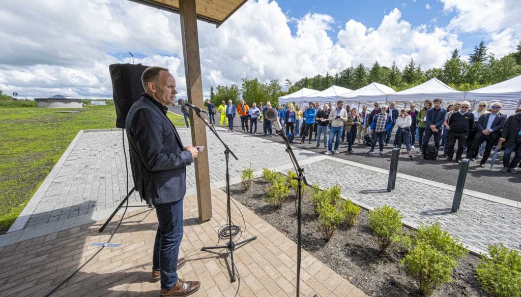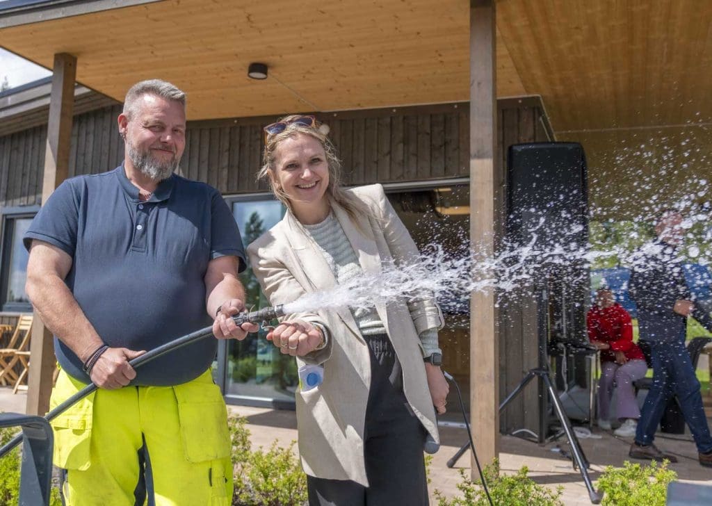 – De fleste som mottar vann fra vannverk får levert trygt vann i dag. Det kan fort endres. Etterslepet i vedlikehold av ledningsnett i de fleste kommuner er en felles utfordring. Vi tror Vannsenteret vil kunne bli en spydspiss i det viktige arbeidet kommunene står overfor, sa Ellen Rønning-Arnesen øyeblikket før hun åpnet kranen og åpnet for vannet i anlegget på Vannsenteret.