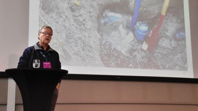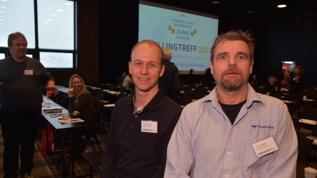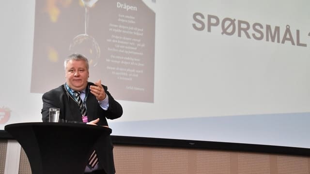 HALLINGTREFF: Tom-Rune Kaurin arbeider som lekkasjesøker i Bærum kommune, og under Hallingtreff fikk konferansedeltakerne et spennende møte med en sporhund…