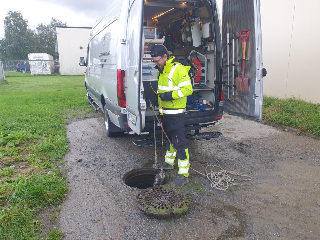 I Ullensaker filmer Sondre kommunale avløpsledninger, og han opplever det som meningsfylt at kunnskapen han henter inn, bidrar til kvalitetsheving av ledningsnettet i kommunen.