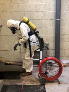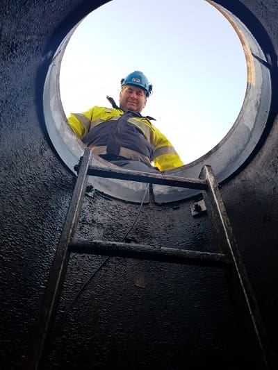 GRØNN AV DRIKKEVANN? Denne karen stilte et spørsmål om han ville bli grønn av å drikke vannet. Bildet er tatt i forbindelse med inspeksjon av et mulig rør som hadde klappet sammen. Foto: Øyvind Hansen, Driftsteknikker avløp, Vann og avløpsetaten Oslo kommune