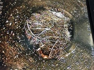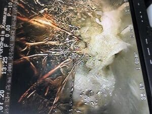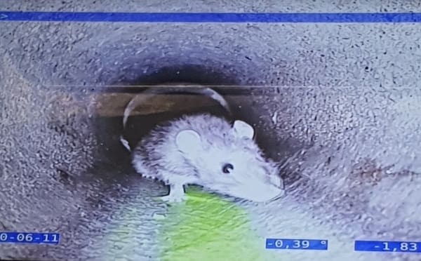 EN EKSTRA OPERATØR. Bildet er hentet fra en rørinspeksjon i en privat enebolig på en adresse i Oslo. Her møtte vi en “ekstra operatør”, som viser vei i ledningsnettet. Spennende for oss, selv om beboeren ikke virket like entusiastisk. Foto: Kenneth Dennis Andersen – Høytrykks-Vakta AS, Lillestrøm.