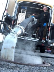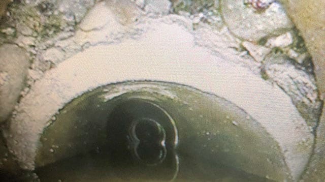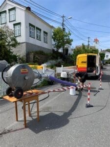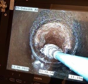 FØR OG ETTER: Ganske tydelig “Før og etter” bilde av rensing av spillvanns ledning. Foto: Joakim Westby, TT-teknikk, Kjeller
