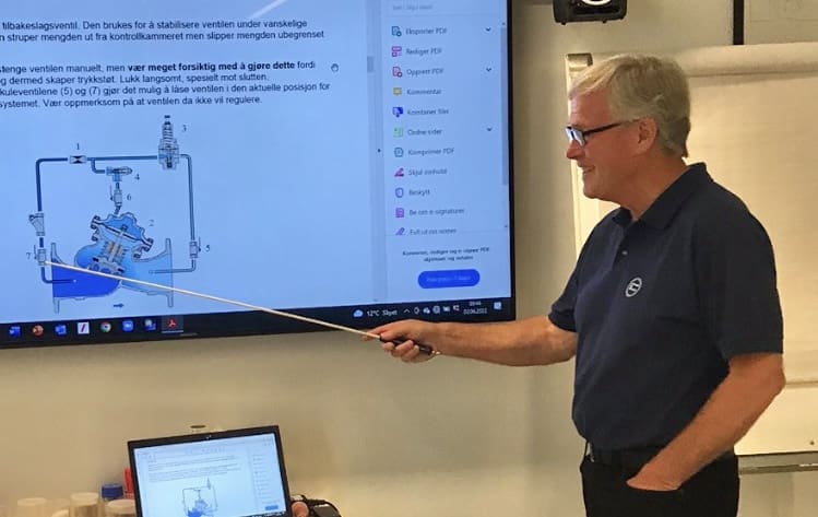 Arnt Olav Holms foredrag denne siste kursdagen er rettet inn mot å hjelpe kursdeltagere som ikke er utdannet lekkasjesøker. De lærer om metoder og utstyr, og får kunnskap om hvordan lekkasjer kan bekreftes og rørtraseer peiles. Først og fremst må de forstå viktigheten av en slik kontroll, før de starter sitt eventuelle VA-arbeid.